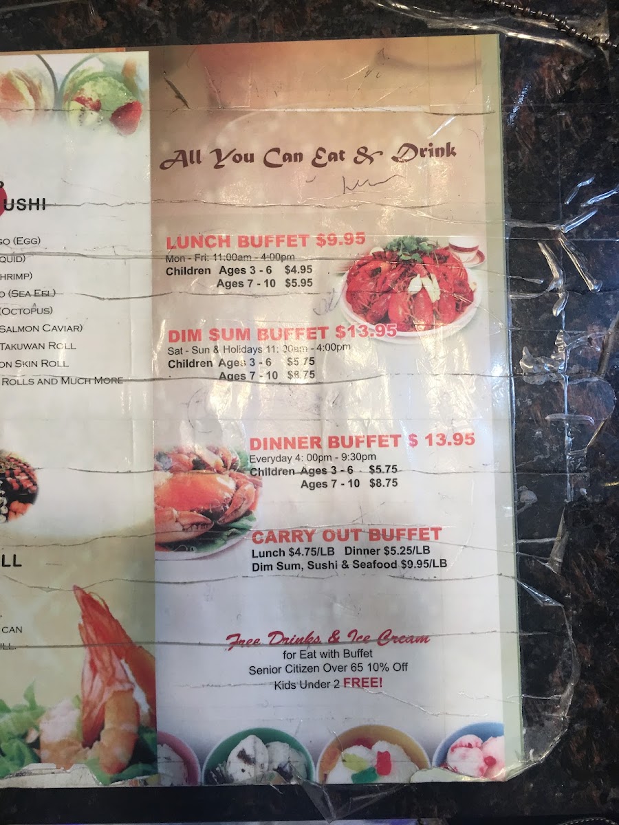 This menu accommodates different dining needs, suitable for casual meals and buffet-style dining. Guests can opt for carryout buffet selections or dine in, making it convenient for quick orders or more relaxed dining experiences.